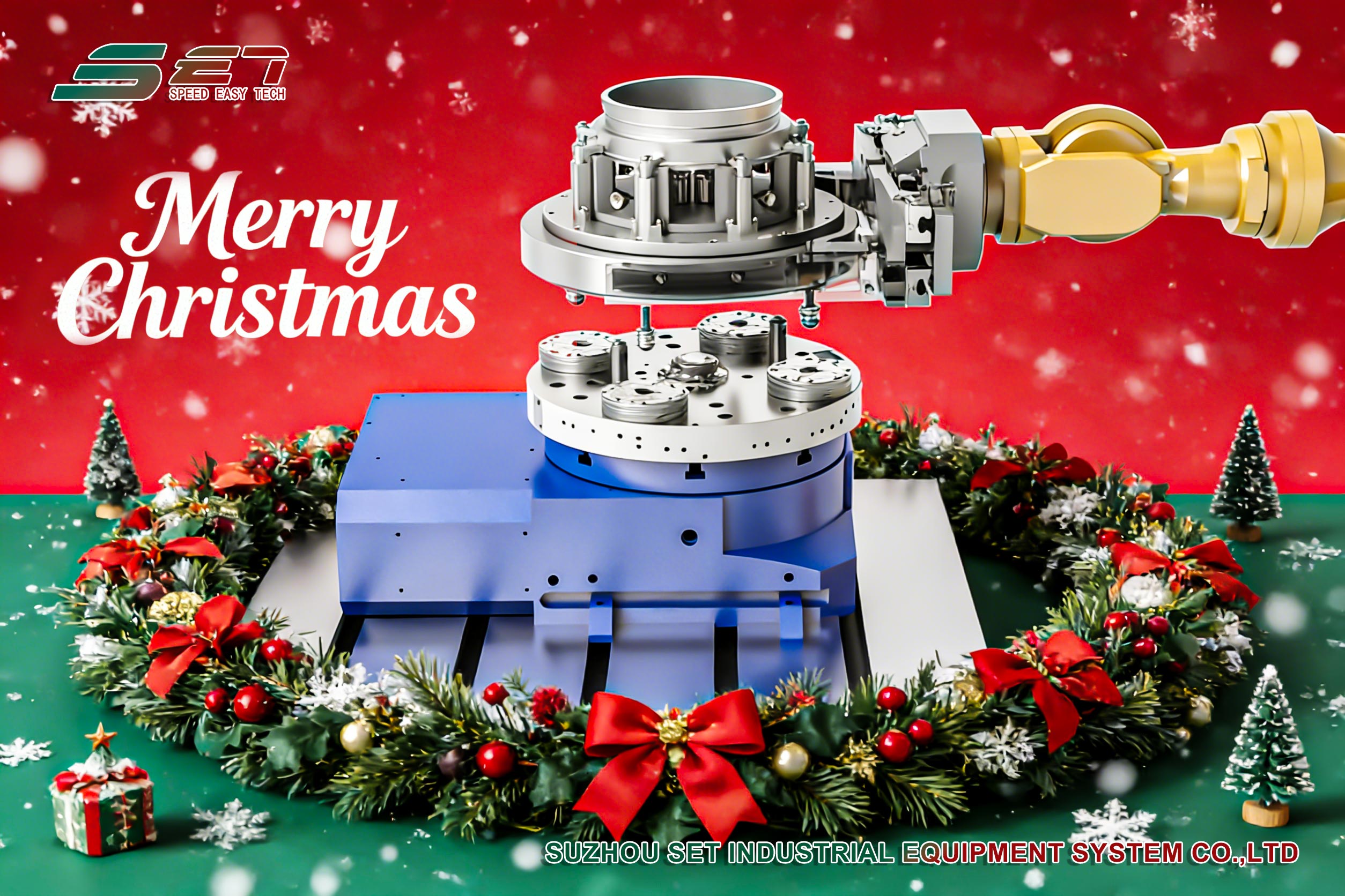 Las campanas navideñas y los copos de nieve adornan la fábrica. ¡En este cálido momento, SET extiende sus más sinceros saludos navideños a sus clientes de todo el mundo! Así como nuestro sistema de posicionamiento de punto cero establece un punto de referencia confiable para la línea de producción con una precisión de posicionamiento repetido de ± 0,003 mm, que esta bendición transmita con precisión su compromiso con la calidad y la búsqueda de la innovación.